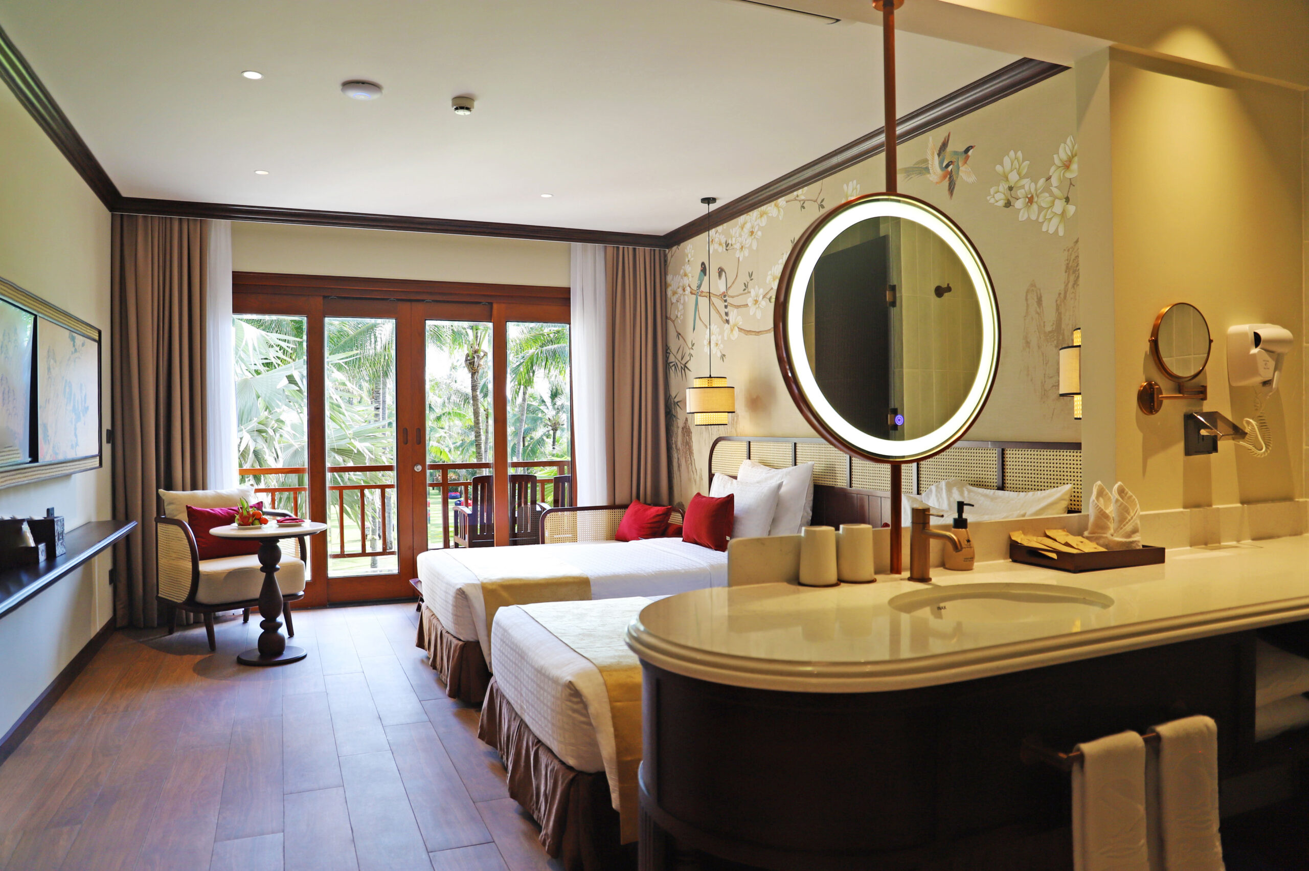 Indulge in a poetic retreat with our “DELUXE GARDEN” room, where the beauty of nature is just a step away. From your expansive balcony, savor the moment with a fragrant cup of coffee as you soak in the panoramic garden views. The lush, tropical garden, with its gentle floral and grassy scents, creates a serene atmosphere that makes time seem to stand still, offering a uniquely captivating escape into pure, refreshing tranquility.