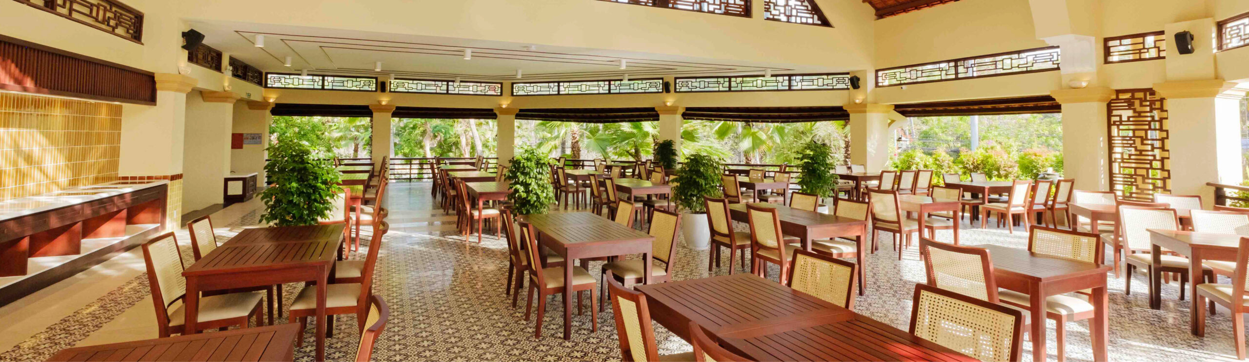 The restaurant welcomes guests with natural light, open spaces, and a refreshing coastal breeze. Whether you choose a table overlooking the vast blue sea or surrounded by lush tropical gardens, Sunrise Restaurant creates a calming and energizing atmosphere for every morning.