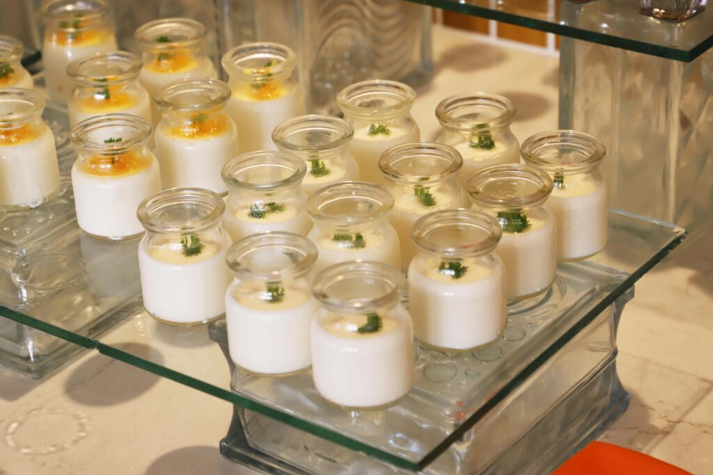 A colorful display of pastries, yogurts, and seasonal fruits — perfect for a sweet ending to your breakfast.